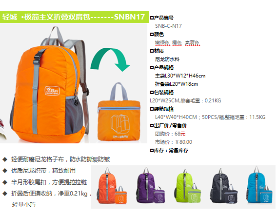 輕城 ·SNBN17極簡(jiǎn)主義折疊雙肩包